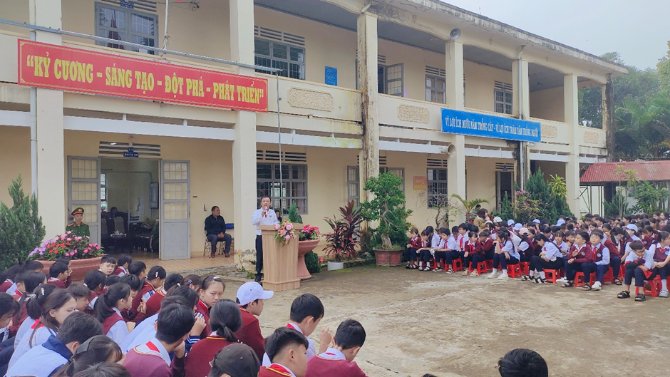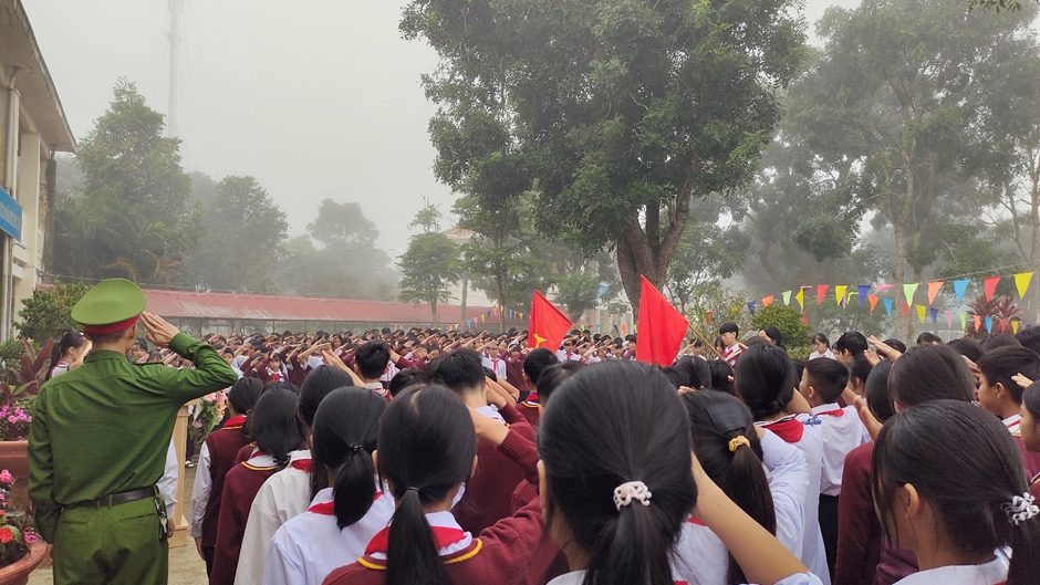 Phát biểu tại buổi lễ, thầy Giang Công Biên – Bí Thư Chi bộ, Hiệu trưởng nhà trường gửi lời cảm ơn đến Công an xã Tân Hội đã phối hợp tổ chức hoạt động ý nghĩa, góp phần giáo dục học sinh ý thức trách nhiệm và tinh thần “Sống đẹp – Sống có ích”.