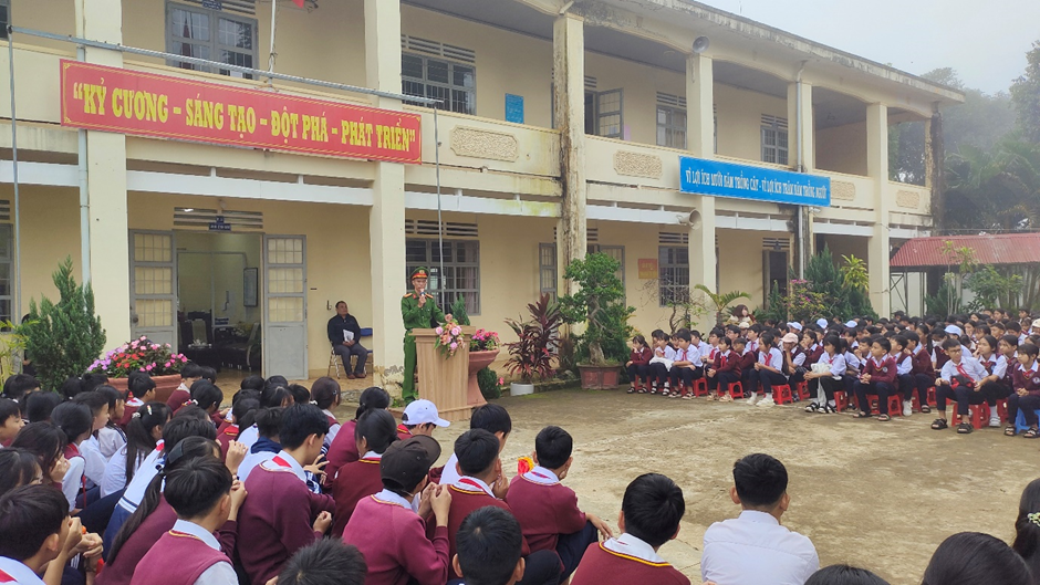 Cán bộ Công an cũng chia sẻ nhiều câu chuyện thực tế về hậu quả của việc vi phạm luật giao thông, góp phần nâng cao nhận thức, hình thành thói quen chấp hành luật trong mỗi học sinh.