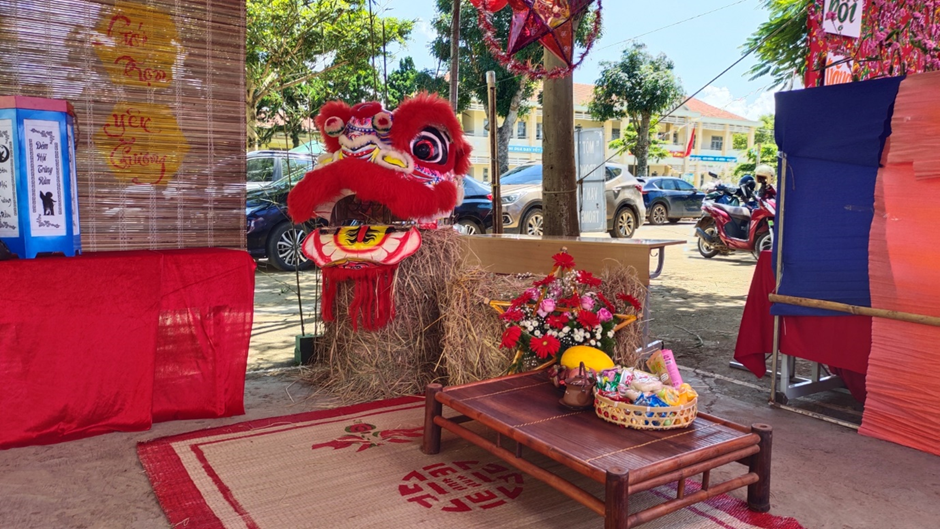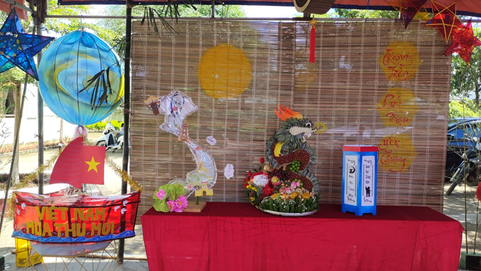Gian hàng Trung thu của trường nổi bật với nhiều chi tiết thủ công tinh xảo