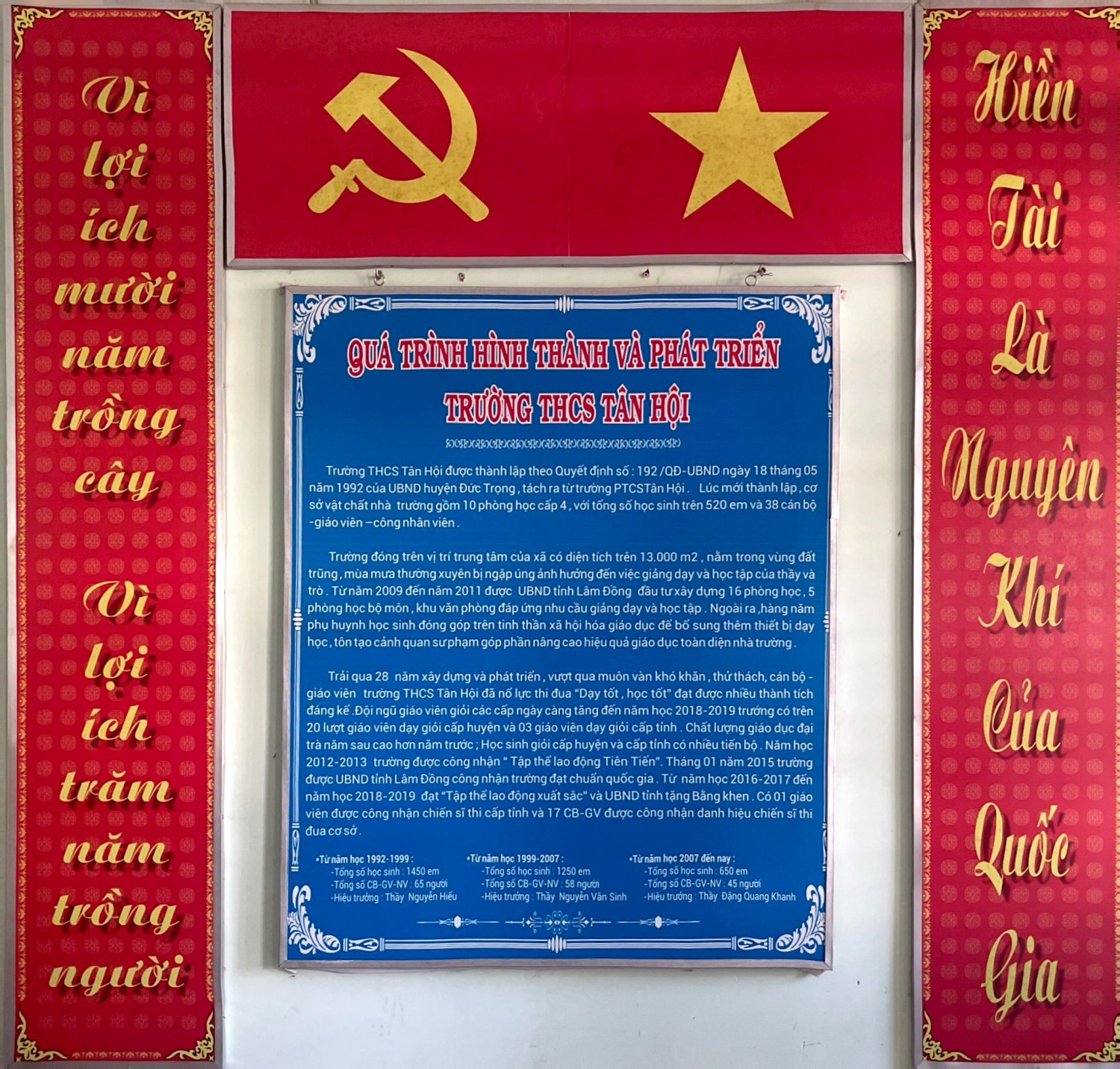 1. Lịch sử hình thành Trường THCS Tân Hội được thành lập theo **Quyết định số 192/QĐ-UBND ngày 18/05/1992** của UBND huyện Đức Trọng, tách ra từ trường PTCS Tân Hội. ([Trường THCS Tân Hội][1]) Lúc mới thành lập, nhà trường có 10 phòng học cấp 4, tổng số học sinh khoảng hơn 520 em và có 38...