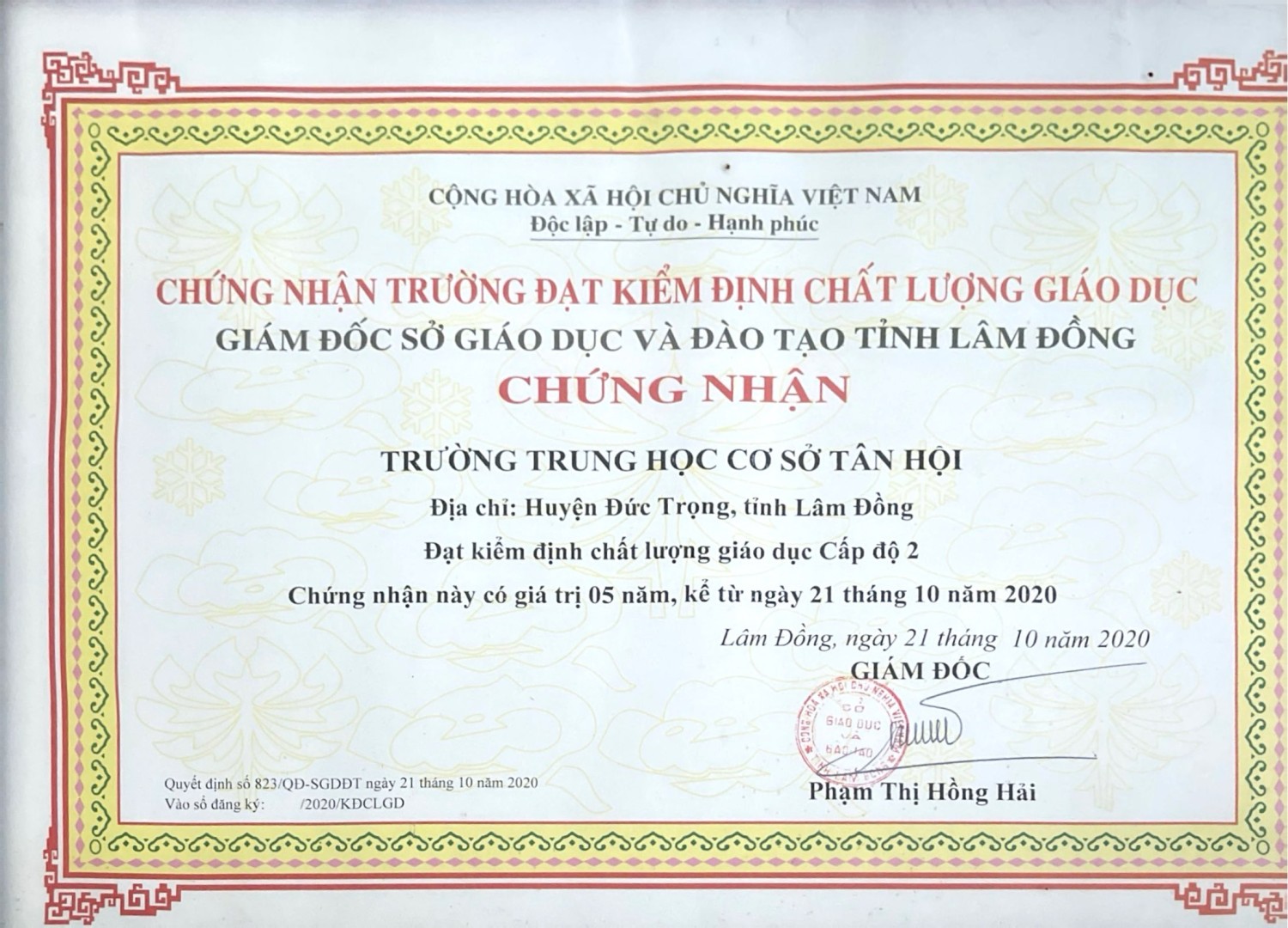 1. Lịch sử hình thành Trường THCS Tân Hội được thành lập theo **Quyết định số 192/QĐ-UBND ngày 18/05/1992** của UBND huyện Đức Trọng, tách ra từ trường PTCS Tân Hội. ([Trường THCS Tân Hội][1]) Lúc mới thành lập, nhà trường có 10 phòng học cấp 4, tổng số học sinh khoảng hơn 520 em và có 38...